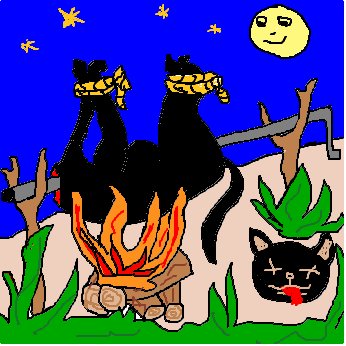 ![]() Isis : miam, c'est bon un chat à la broche ;-) |