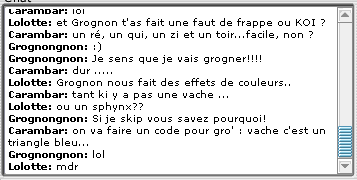 Ben voilà, on défini un code pour Grognongnon et après on s'en souvient plus... je sens que ça va pas être triste... Bravo Seashell :-)))) |