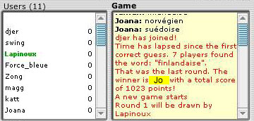 Aujourd'hui Jo nous a abandonner un moment pour aller jouer dans une autre room... Elle est revenue plus tard nous annoncer son triomphe... Plutôt adeptes de la scolastique de St-Thomas, nous avons avancé quelques doutes. Acculée, Jo a bien tentée de prouver son exploit... Malheureusement, des années de pratiques et un oeil exercé m'ont permis de déceler la supercherie. C'est pas beau, Jo !!! (je n'ai pas pu resister Jo - la vrai est pas loin, faut cliquer :-) GBS) |